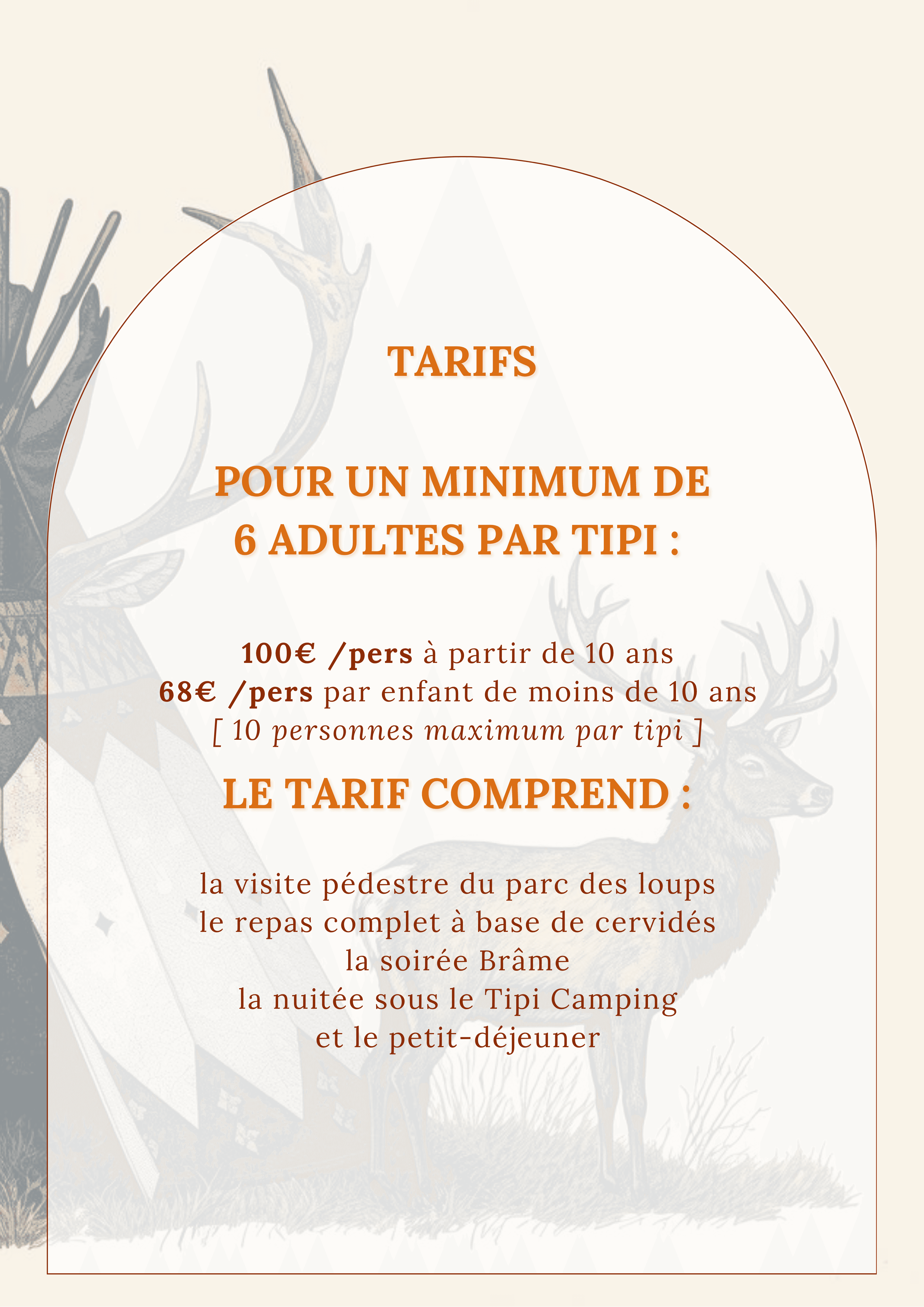 À PARTIR DE 6 ADULTES MINIMUM PAR TIPI