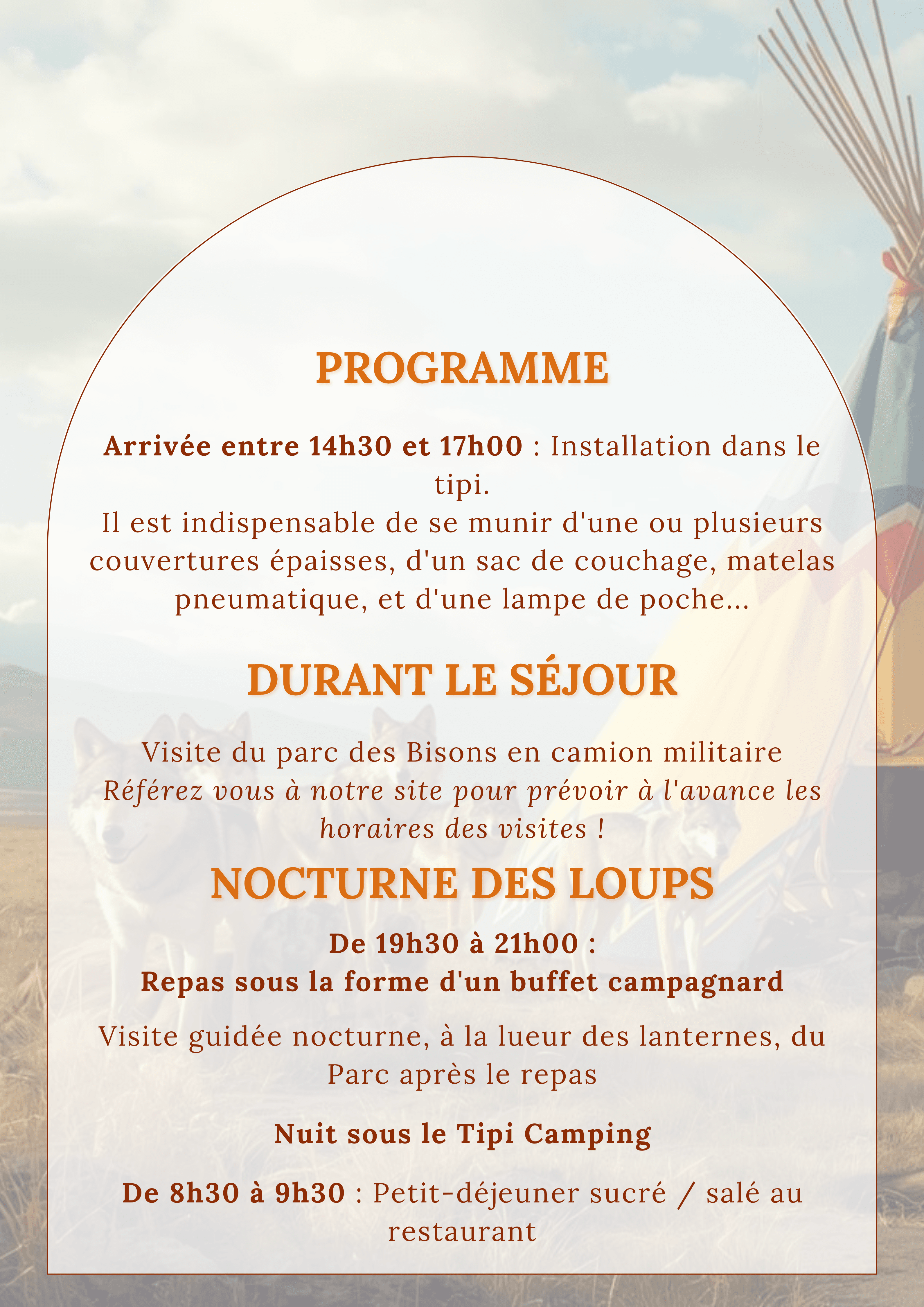 ➝ Plats, sandwiches et salades vous attendent, à déguster face à notre mini ferme, à la fin du parcours des loups !