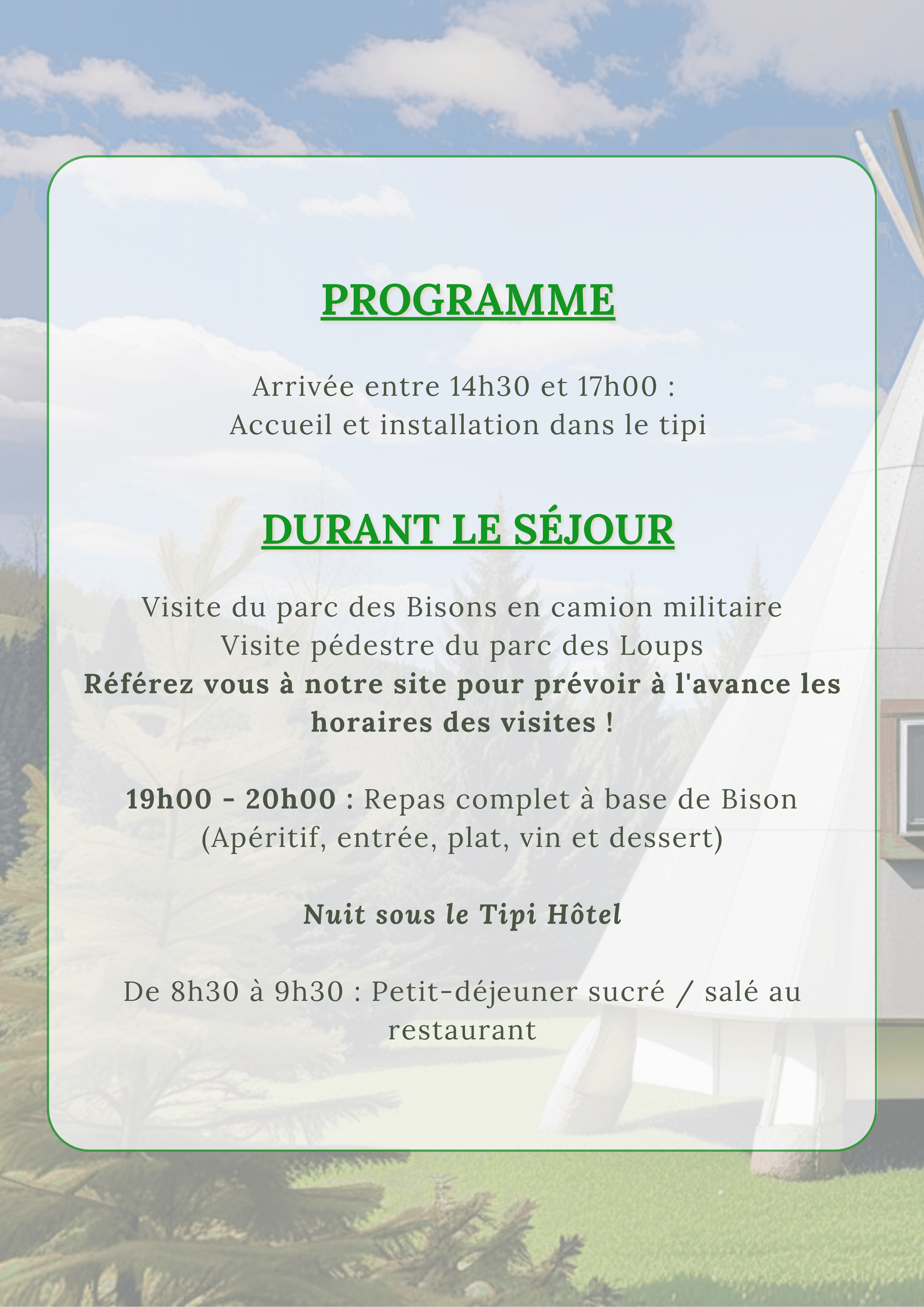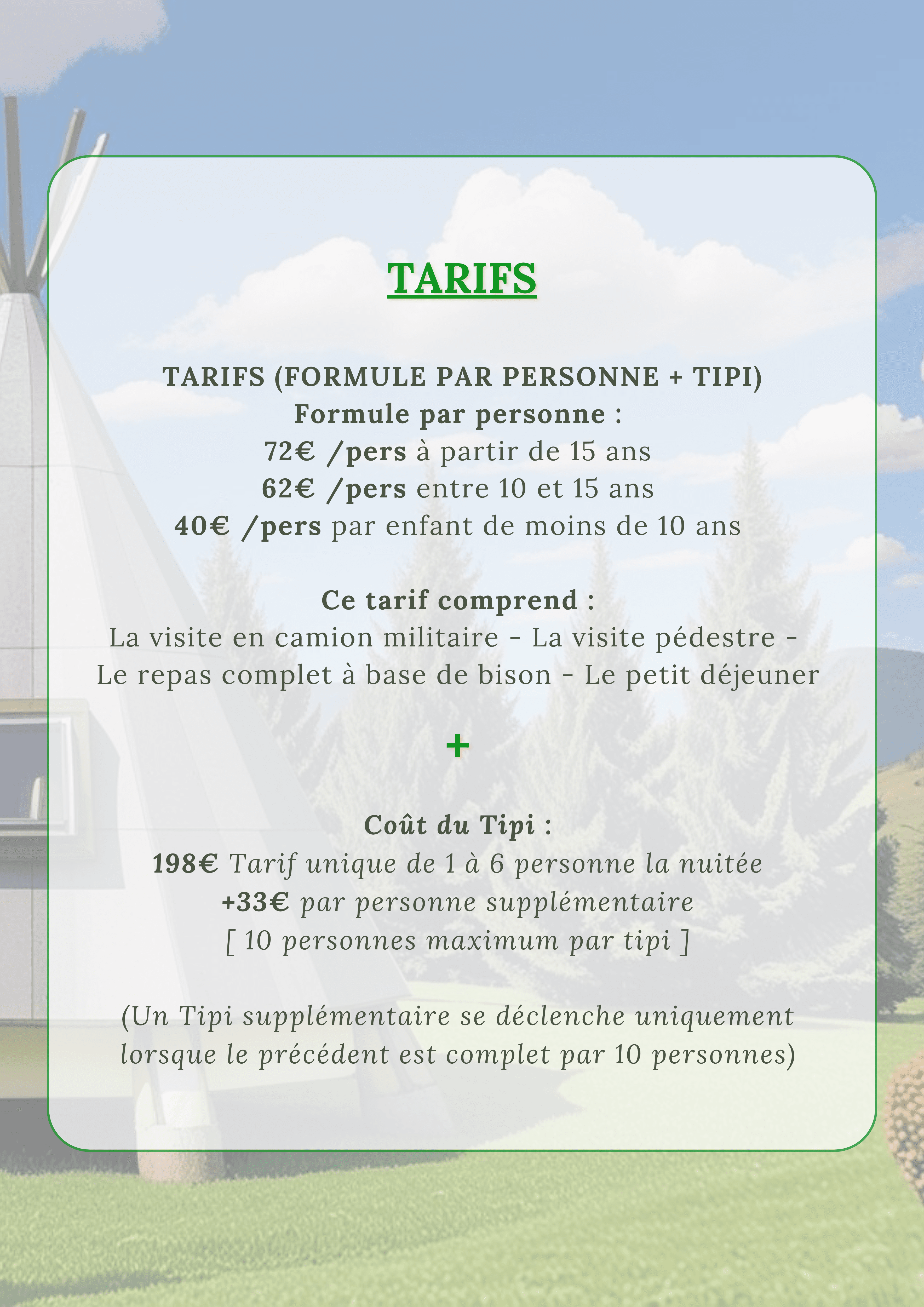 EXEMPLE DE TARIF POUR UN SÉJOUR :